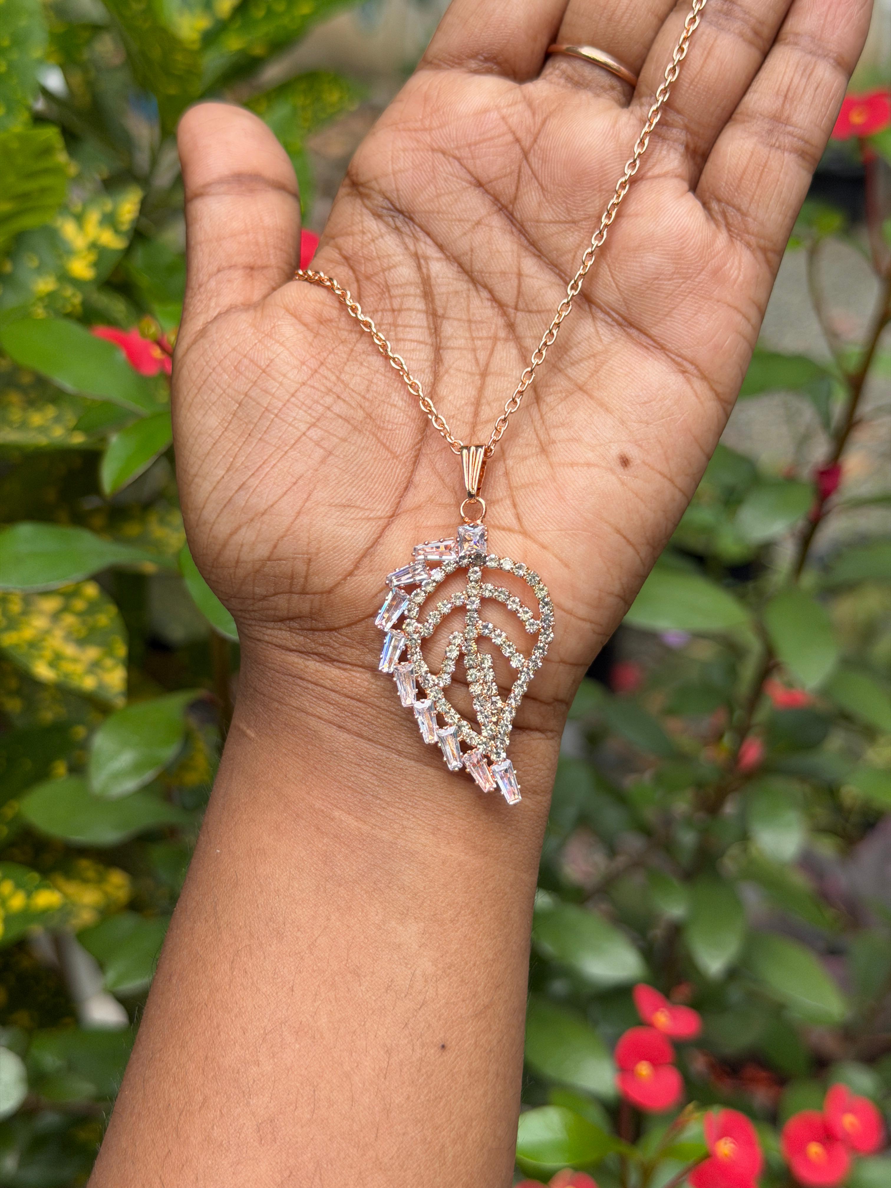 AD Stone Crystal Leaf Pendant