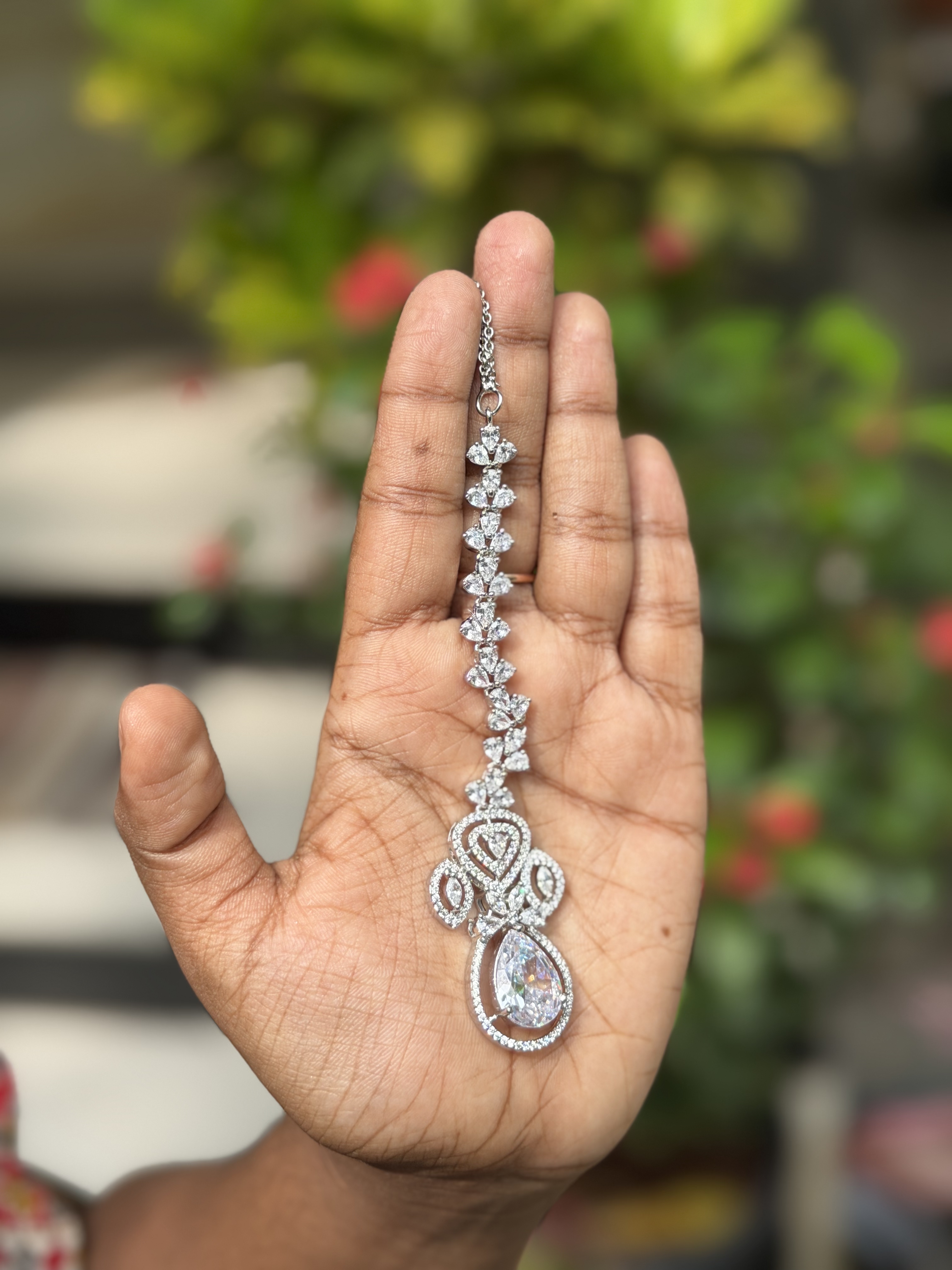 A bridal choker set adorned with premium AD stones and teardrop crystals