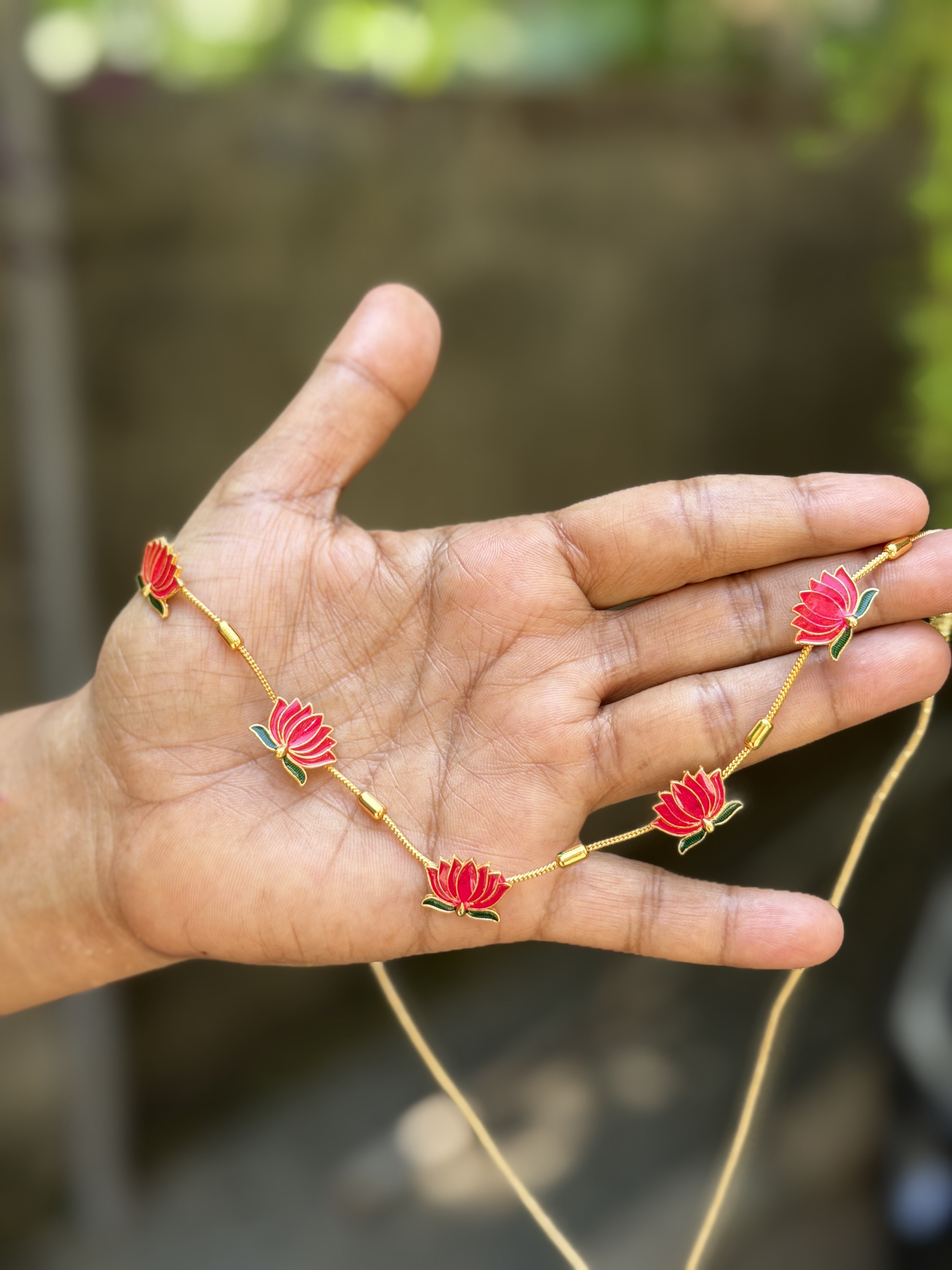 A graceful necklace set featuring charming Lotus motifs crafted with subtle gold detailing.